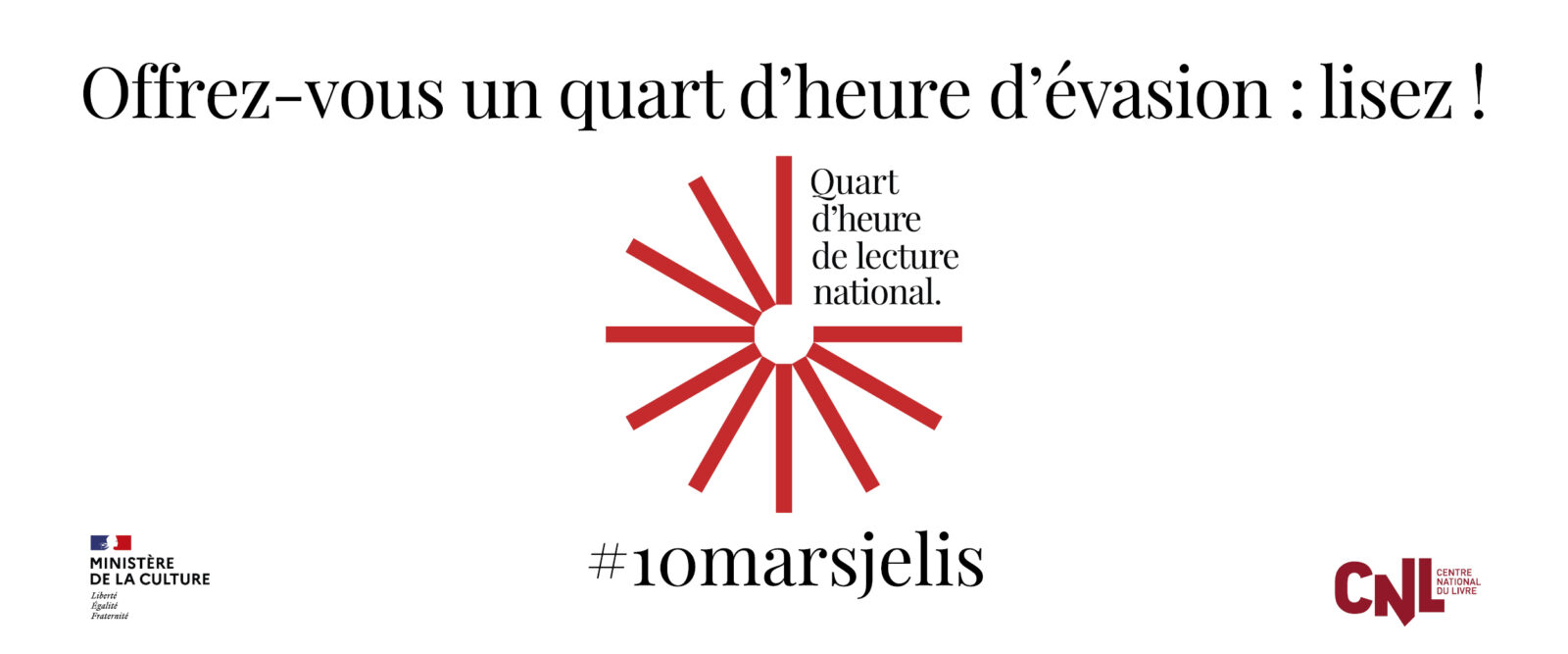 Le Quart d’heure de lecture national est une initiative du Centre national du livre (CNL), qui invite, pour la cinquième édition, toutes les Françaises et tous les Français à célébrer collectivement la lecture à travers un Quart d’heure de lecture national, le mardi 10 mars 2026. En partenariat avec l’Éducation nationale pour les écoles, le CNL mobilise aussi les entreprises, les administrations, les associations, les centres sociaux, les EHPAD, et bien sûr les bibliothèques et les librairies… Cette opération nationale symbolique vise à sensibiliser l’ensemble des citoyens à l’importance de la lecture, et à encourager toutes les organisations, publiques et privées, à mettre en place, en leur sein, des projets réguliers autour du livre et de la lecture. En savoir plus